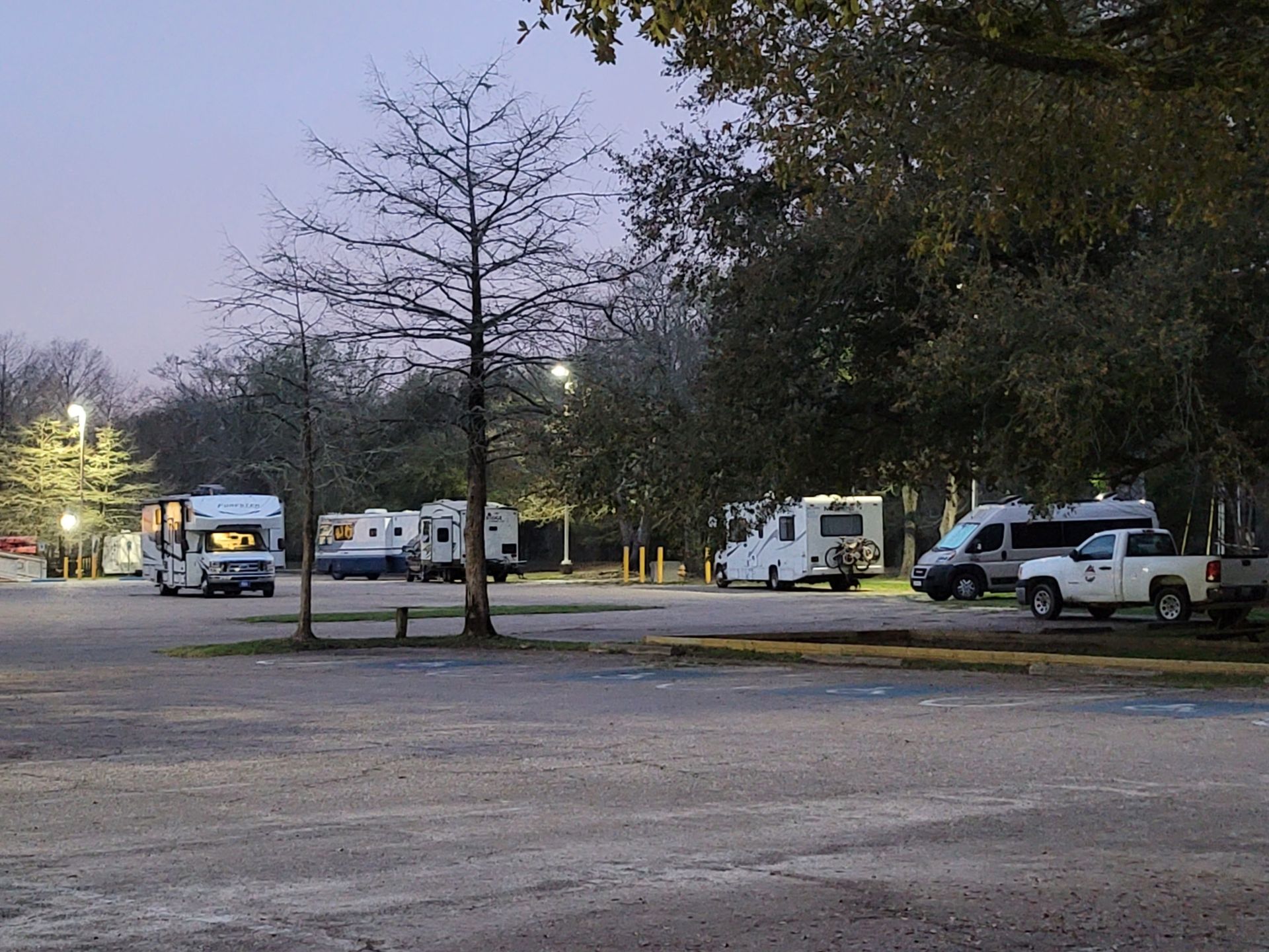 On my way to visit my uncle in Georgia in February 2022, I stopped at Vermilionville, a Harvest Host location in Louisiana near I-10 for the night. They have a large open parking lot that is mostly level (if you find the right spot), or you can use your levelers if needed. The night I stayed there were 5 other RVs in the lot. One couple I met was from Canada and traveling the US in a Class B motorhome. I didn’t get to meet the others, but there was a 5th wheel, and the rest were class-A motorhomes. We were all spread out around the parking lot, with plenty of space for our privacy.