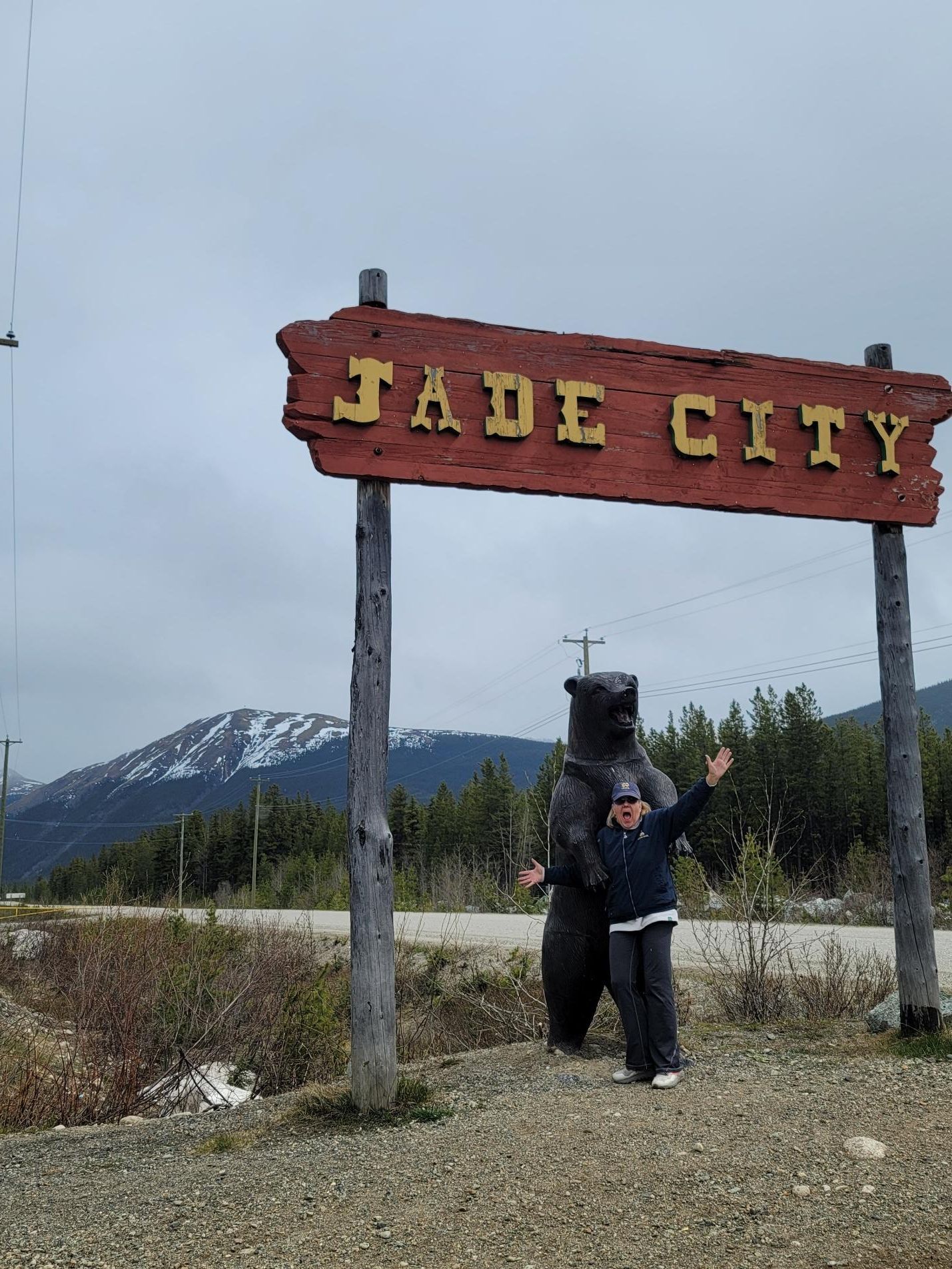 Jade City, and we had our first wildlife sighting! A brown bear wandering along the side of the highway.