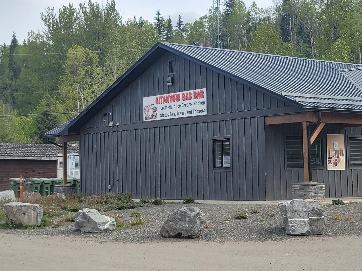 Gitanyow Gas Bar and Totem Poles. An interesting stop on native lands. There were some amazing totem poles, so we took some time to check these out before heading out on the Cassiar.