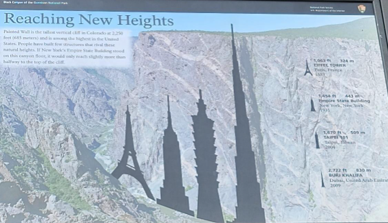 No trip to Black Canyon is complete without seeing the Painted Wall, the tallest cliff in Colorado at 2,250 feet. The wall gets its name from the streaks of pegmatite that look like someone painted them on the rock face. Standing there, staring at this natural masterpiece, I felt a profound sense of awe. It’s one of those places that make you realize just how small you are in the grand scheme of things.