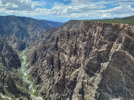 The moment I stepped out of the car, I was hit by a gust of wind that carried with it the scent of adventure and a hint of pine. Walking to the edge, I got my first glimpse of the canyon. Words can’t do it justice. The canyon walls plunge nearly 2,000 feet down to the Gunnison River, which snakes its way through the dark, jagged cliffs. The rock formations are so raw and powerful; you can almost feel the geological history.